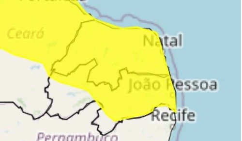 O Instituto Nacional de Meteorologia (Inmet) emitiu nesta segunda-feira (9) um alerta amarelo de perigo potencial para todo o estado do Rio Grande do Norte. O aviso começou às 10h desta segunda-feira e segue válido até as 23h59 de terça-feira (10). A