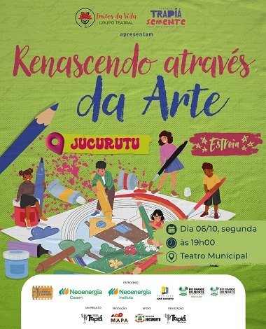 Nesta segunda-feira (6), às 19h, o Teatro Municipal Padre João Medeiros Filho, em Jucurutu, será palco da estreia do espetáculo “Renascendo Através da Arte”, que marca a primeira apresentação do Grupo Teatral Frutos da Vida, formado por adolescentes e jovens do município. Através do Projeto Trapiá Semente, os jovens vivenciaram, …