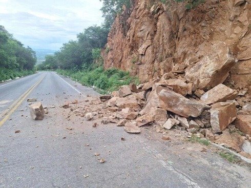 Desmoronamento de pedras atinge a pista da PB-262, na Serra do Teixeira