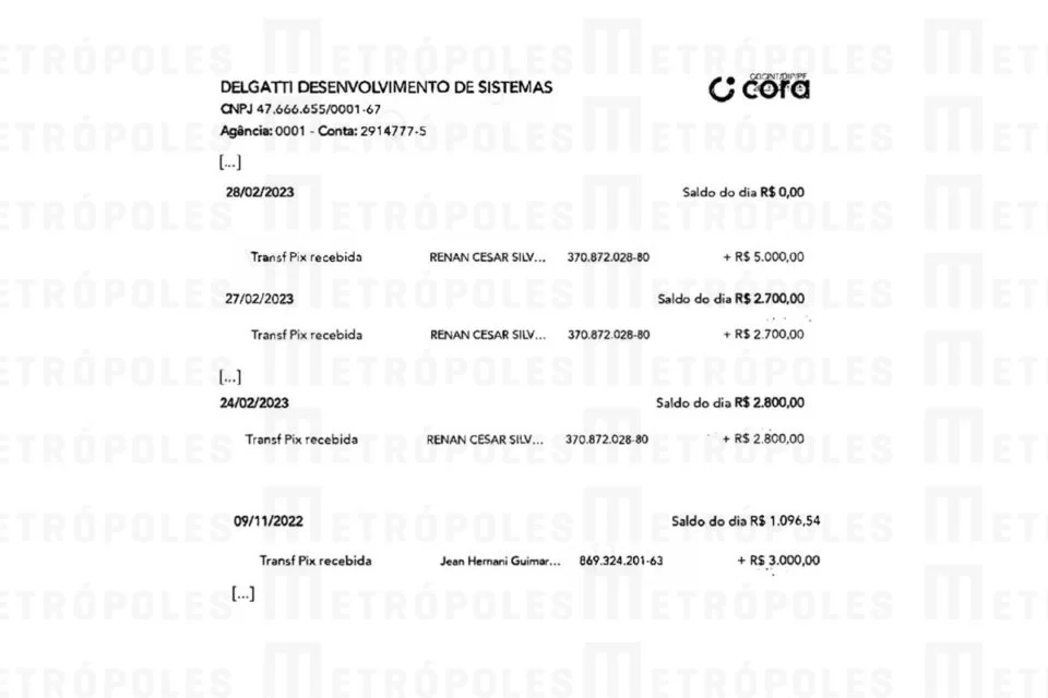 Do Metrópoles – A principal prova usada pela Polícia Federal (PF) para embasar o pedido de busca e apreensão contra a deputada federal Carla Zambelli, no começo deste mês, é um extrato do banco digital Cora, cuja cópia foi obtida pelo Metrópoles. Foi com base neste documento que os investigadores conseguiram dar o mínimo de credibilidade ao depoimento que o programador e “hacker” Walter Delgatti prestou, contando um plano golpista envolvendo o ex-presidente Jair Bolsonaro (PL).