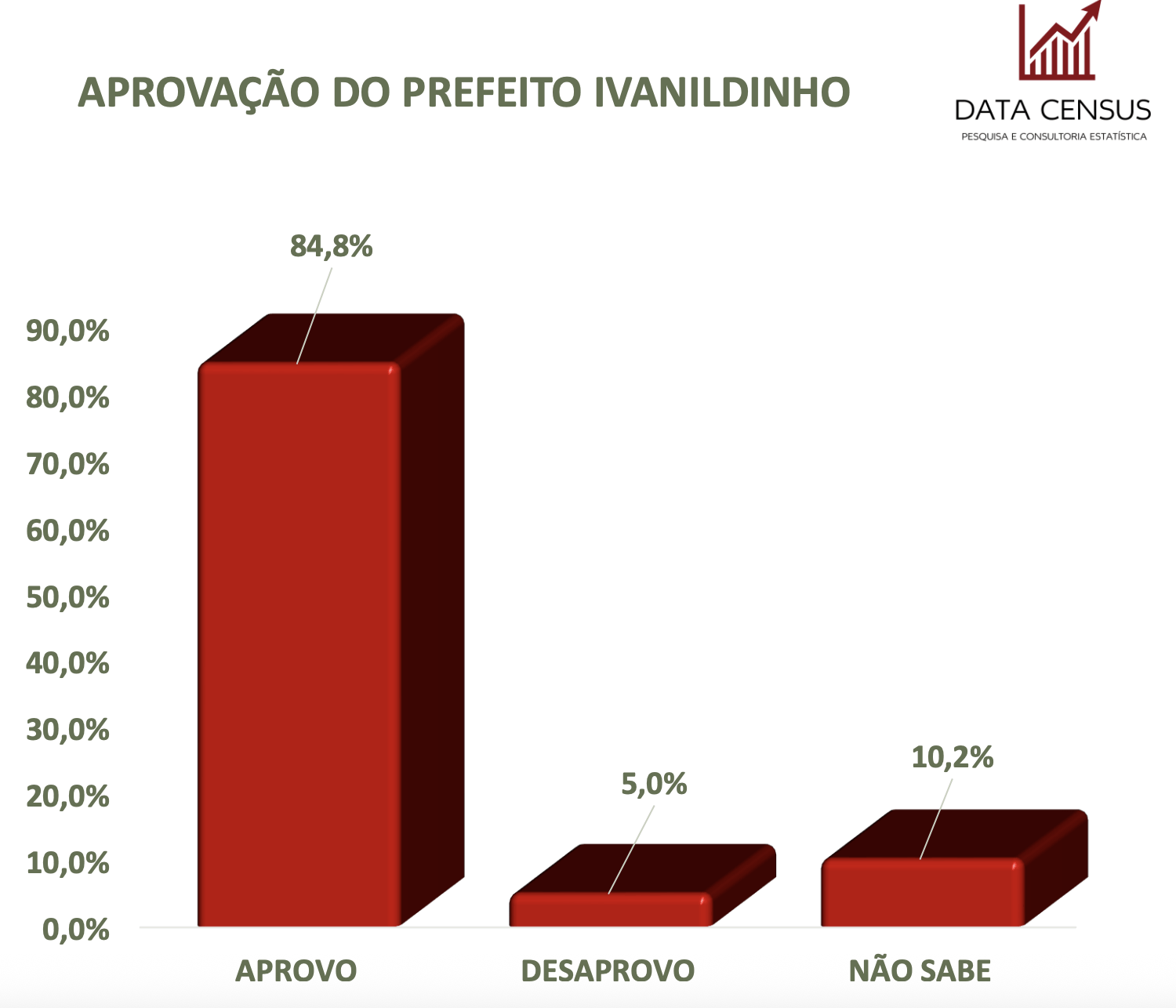 O instituto Data Census realizou levantamento no município de Timbaúba dos Batistas no dia 10 de setembro de 2025 e apontou que o prefeito Ivanildinho tem a maior aprovação entre gestores do Rio Grande do Norte. Segundo os dados, 84,8% a população aprova a administração, enquanto só 5,0% desaprova e 10,2% não soube responder.