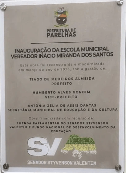 Além de fornecer os recursos de forma indireta, o senador também teve o nome incluído na placa inaugural da escola, ao lado da identidade visual de seu mandato, e participou do descerramento durante a cerimônia de entrega. Em vídeos divulgados nas redes sociais, Styvenson aparece percorrendo a unidade e exaltando a transformação do espaço. “Eu estou aqui em Parelhas, olha a escola Inácio Miranda. Gente, reconstruída. Totalmente reconstruída. Treze salas. A escola aqui era um lixo. Renasceu de novo. Linda a escola”, disse.